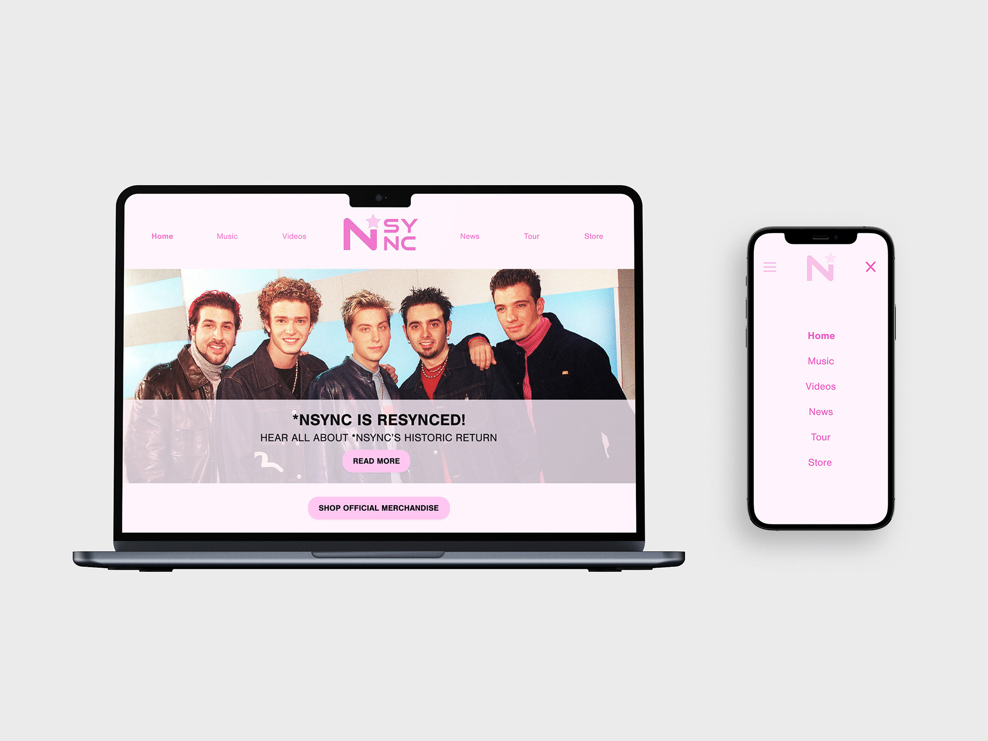As a huge fan of *NSYNC, I decided to conceptualize a refresh for their overall brand identity to allow more cohesion. With the group recently reuniting for the first time in 20+ years to release music, I decided to use that angle for my design approach by having the branding play into what makes *NSYNC stand out and hold up through time while ensuring the identity can do the same.